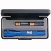 5 3/4" in length. Comes with 2 “AA” batteries and packaged in a sleek, black presentation box. MADE IN USA.